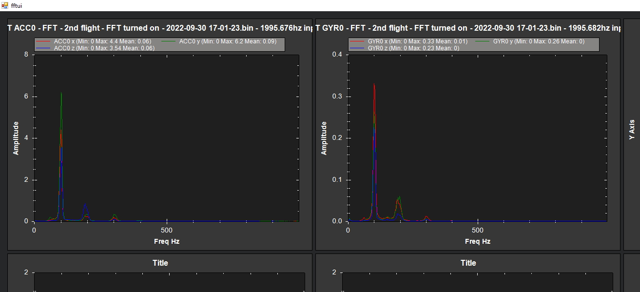 Notice that the Mission Planner charts are about the same with and without FFT enabled. The MavExplorer charts however have different Y-axis levels displayed.